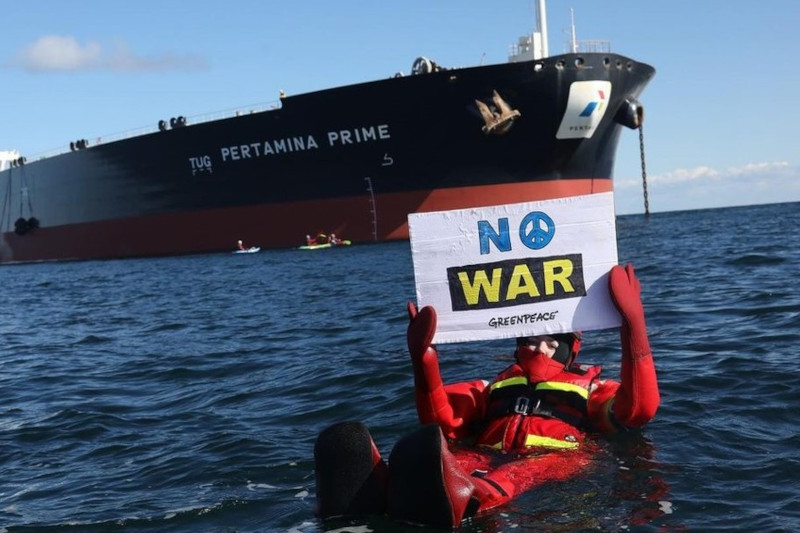 Sejak konlfik Rusia-Ukraina, para aktivis Greenpeace berulang kali memblokade kapal dari berbagai negara yang masih membeli minyak Rusia.