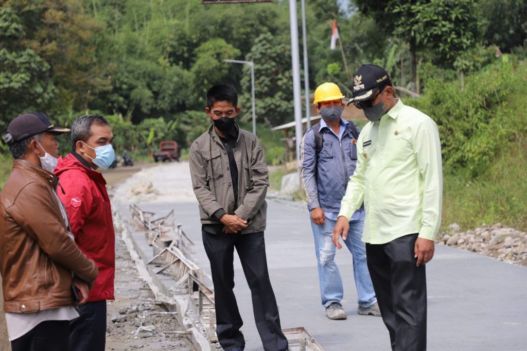 Wakil Bupati (Wabup) Garut, dr. Helmi Budiman, saat meninjau secara langsung rekonstruksi jalan yang berlokasi di daerah Kecamatan Leles, Kabupaten Garut, selasa (12/4/2022).
