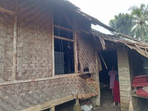 “Yang rusak itu TV, lemari Baju, rak piring, bagian rumah dan atapnya serta KWH listrik,” tuturnya.