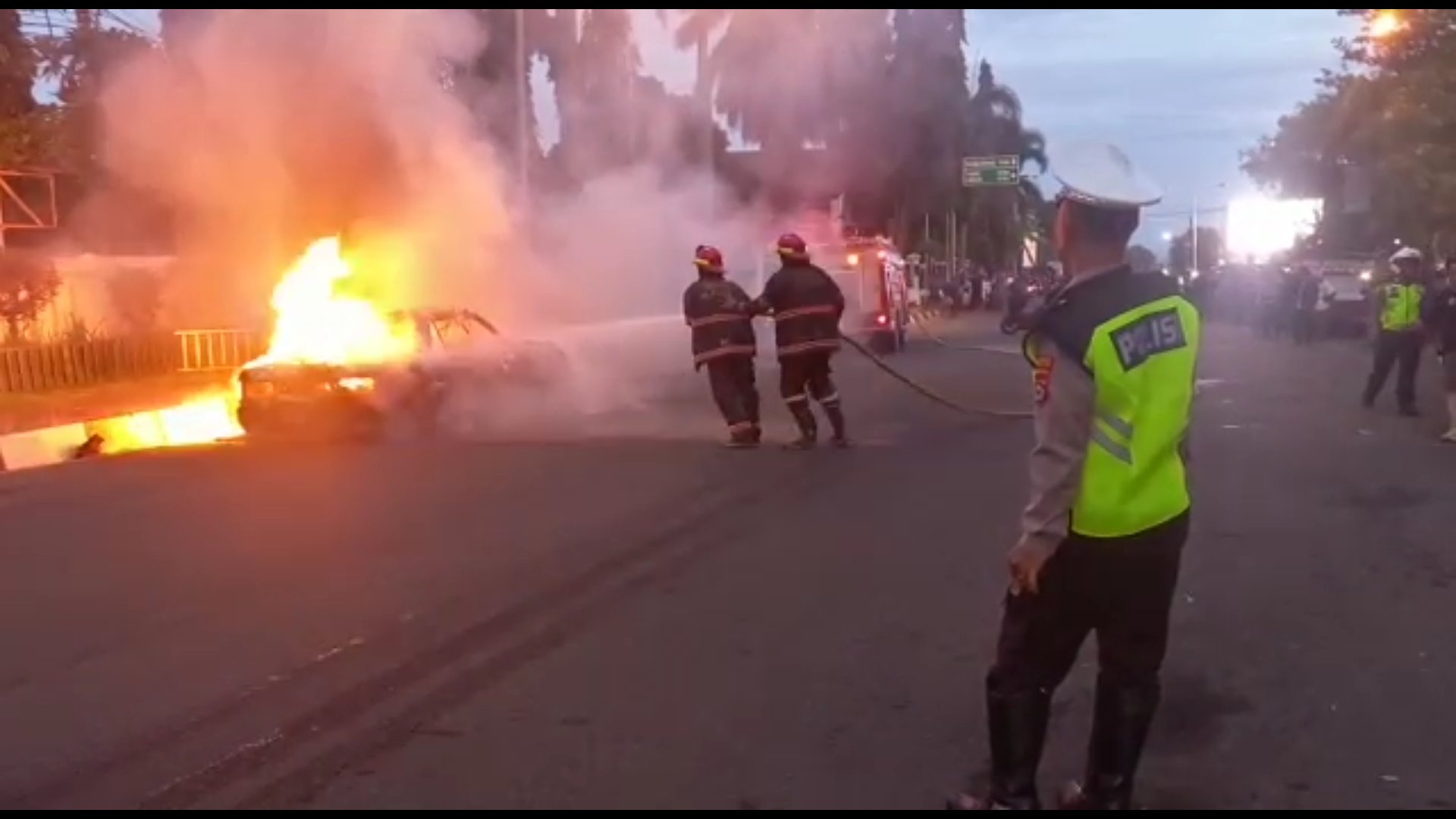 Mobil tersebut diduga terbakar karena terjadi korsleting di bagian mesin, sehingga menimbulkan asap dan mengeluarkan api.