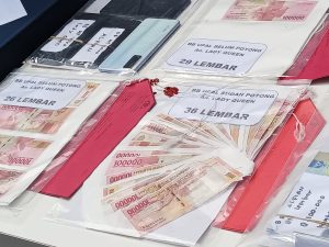 “Sebelumnya dia beroperasi dengan rekan prianya, yang sudah diamankan oleh Polrestabes Semarang. Total uang palsu yang kita amankan pada hari ini, dari pecahan 100rb ada 282 lembar kemudian yang masih dalam bentuk kertas itu ada 26 lembar, dan 87 pecahan 50rb” ungkap Kapolsek Panongan, sembari memperlihatkan beberapa barang bukti yang berhasil diamankan.