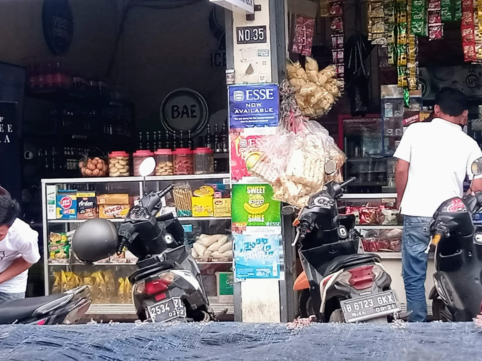 Terlihat botol minuman dari berbagai jenis Miras, ditumpuk secara terbuka di depan warung tersebut dalam beberapa keranjang. Bahkan akan dengan jelas terlihat oleh pengendara motor yang sekedar melintas di jalan sekalipun.