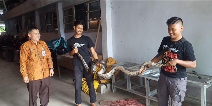 “Kami menerima telepon dari pimpinan ponpes, kami punya tim ahli hewan melata atau hewan buas. Sehingga dengan mudah petugas menangkapnya dan ular itu langsung kita dievakuasi,” katanya.