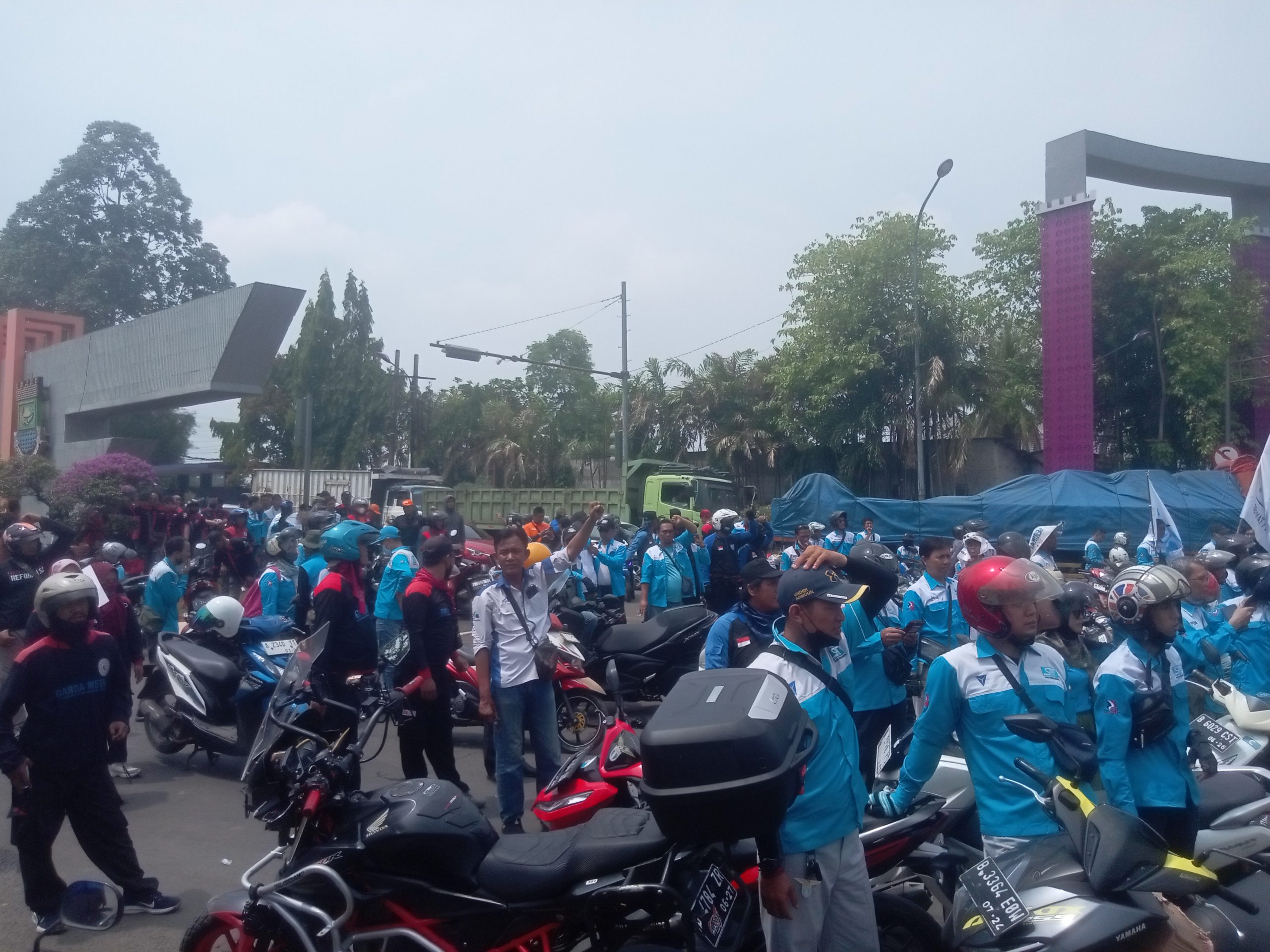 Jabarbanten.id/Tangerang Terkait hari buruh seluruh Aliansi dari serikat buruh dari Kota dan Kabupaten Tangerang padati jalan raya Pemda Kabupaten Tangerang,Rabu 29 November 2023