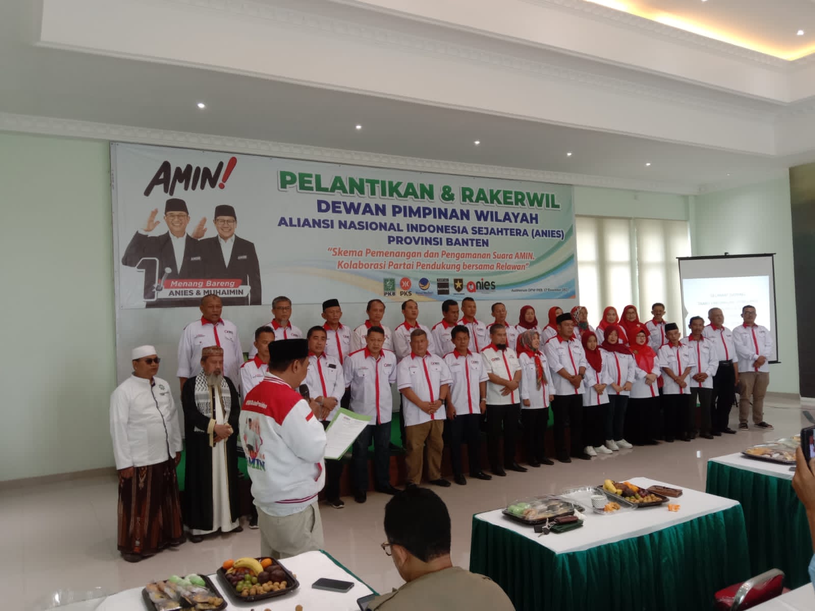 Pelantikan Pengurus DPW ANIES Banten ini dipimpin oleh perwakilan Presidium DPP ANIES, Laode Basir. Turut hadir pada kesempatan itu Sekjen DPW NasDem Banten, Sekjen DPW PKB Banten, perwakilan DPW PKS Banten, dewan pembina dan penasehat DPW ANIES Banten, para pengurus, kader, hingga perwakilan relawan.