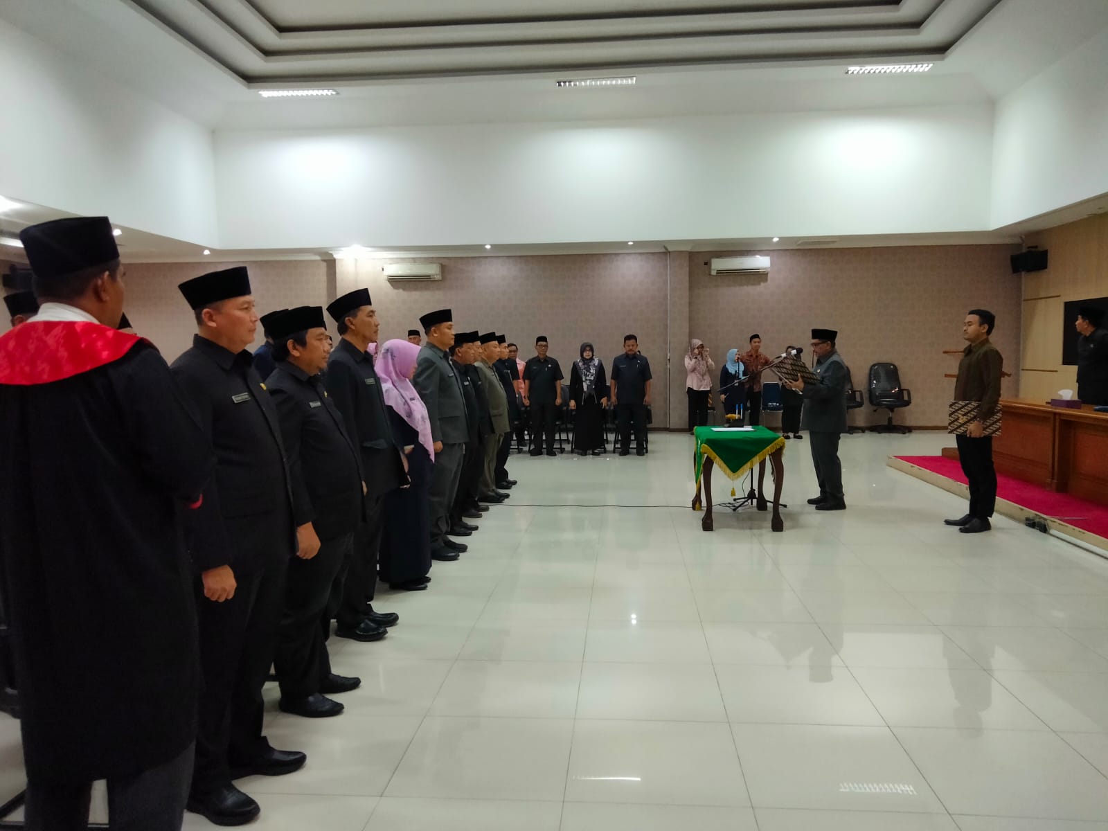 Jabarbanten.id-PANDEGLANG- Pasca pemilihan umum (pemilu) 2024 pemerintah Kabupaten Pandeglang melakukan rotasi dan mutasi dengan melantik puluhan pejabat Eselon II dan III. Bupati Pandeglang Irna Narulita melalui Sekretaris Daerah Kabupaten Pandeglang, Ali Fahmi Sumanta melakukan pelantikan yang ditandai dengan pengambilan sumpah janji jabatan di ruang Oproom, Setda Pandeglang, pada Jumat (1/3/2023).